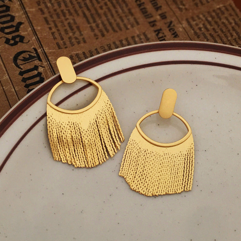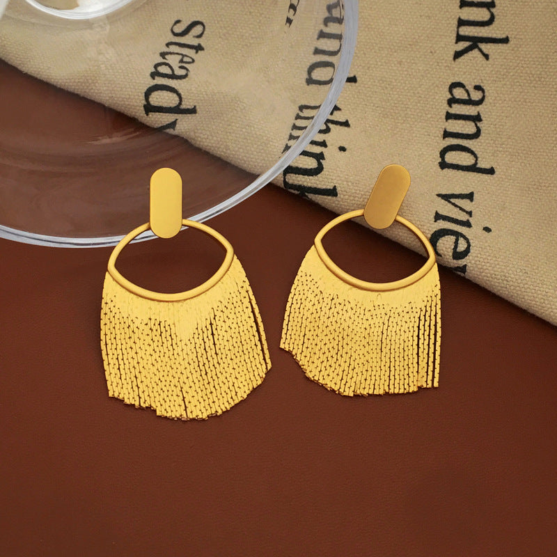 The centerpiece of these earrings is the trendy tassel design, which adds a touch of movement and drama to your look. The dynamic interplay of the tassels creates an expressive and chic aesthetic that's perfect for those who embrace bold and distinctive style choices.