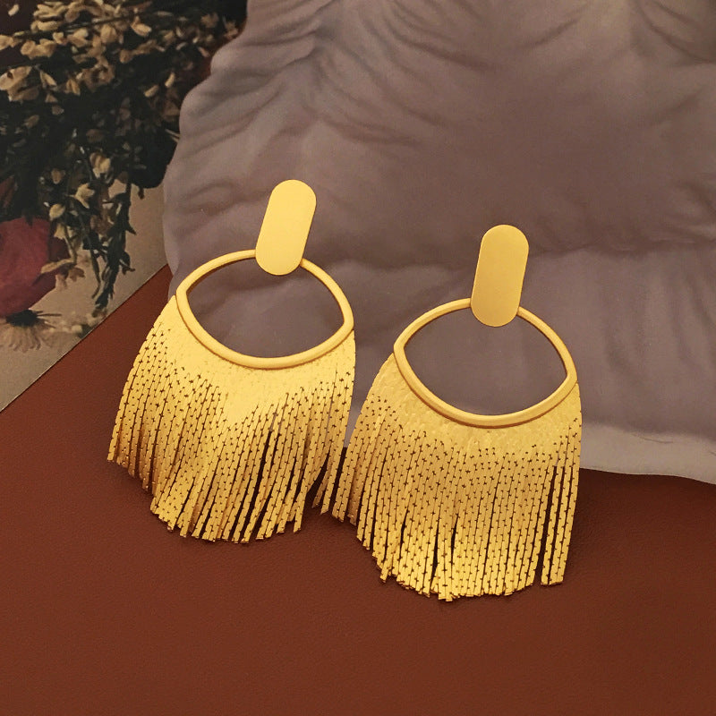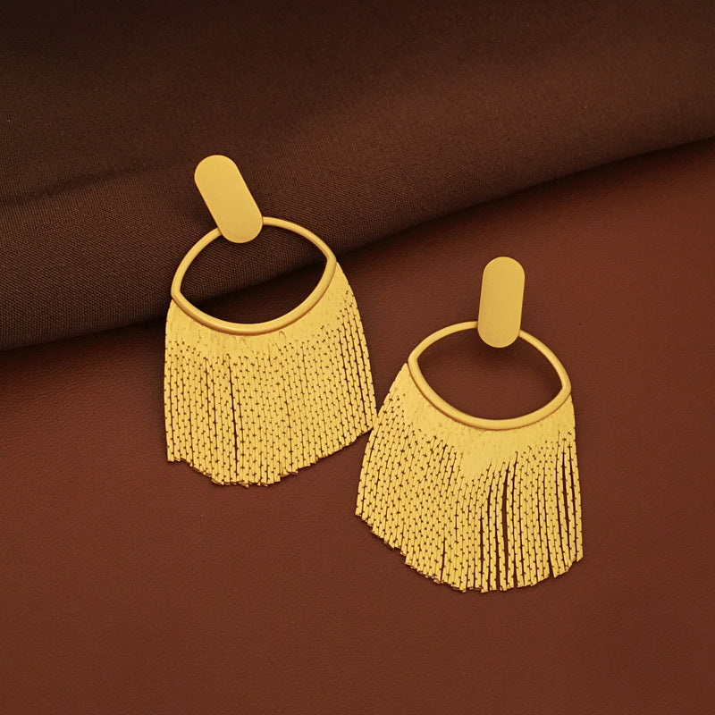 Experience the fusion of European and American fashion with expressive elegance through our Trendy Tassel Design Earrings. Elevate your style effortlessly and embrace your individuality with this captivating accessory. Order these exquisite earrings today and become a trendsetter with a taste for expressive fashion.