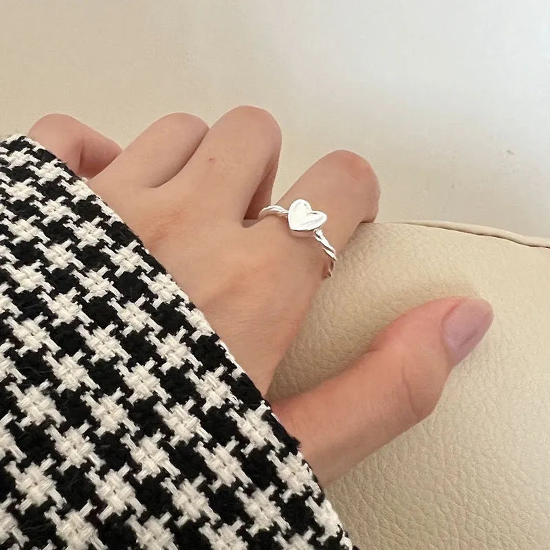 Introducing our exquisite S925 Sterling Silver Solid Heart Ring, a perfect blend of simplicity and distinctive style. Crafted with precision and attention to detail, this ring features a unique twisted rope design, adding a touch of elegance and charm to your look. The solid heart symbolizes love and affection, making it a meaningful and thoughtful gift for yourself or your loved ones. The ring is made of high-quality S925 sterling silver, ensuring durability and lasting shine. The adjustable feature allows for a perfect fit on any finger, making it a versatile piece that can be worn as a statement piece on your index finger or a delicate accent on your ring finger. Embrace the essence of personalized fashion with this small but captivating accessory, suitable for various occasions and styles. Whether you're dressing up for a special event or going for a casual and chic look, this solid heart ring will complement your outfit with its understated elegance. Upgrade your jewelry collection with this little treasure, and let it become a symbol of your unique style and individuality. Make a statement with our S925 Sterling Silver Solid Heart Ring, designed for women who appreciate the beauty of simple and distinctive designs, and embrace the spirit of being different and extraordinary.