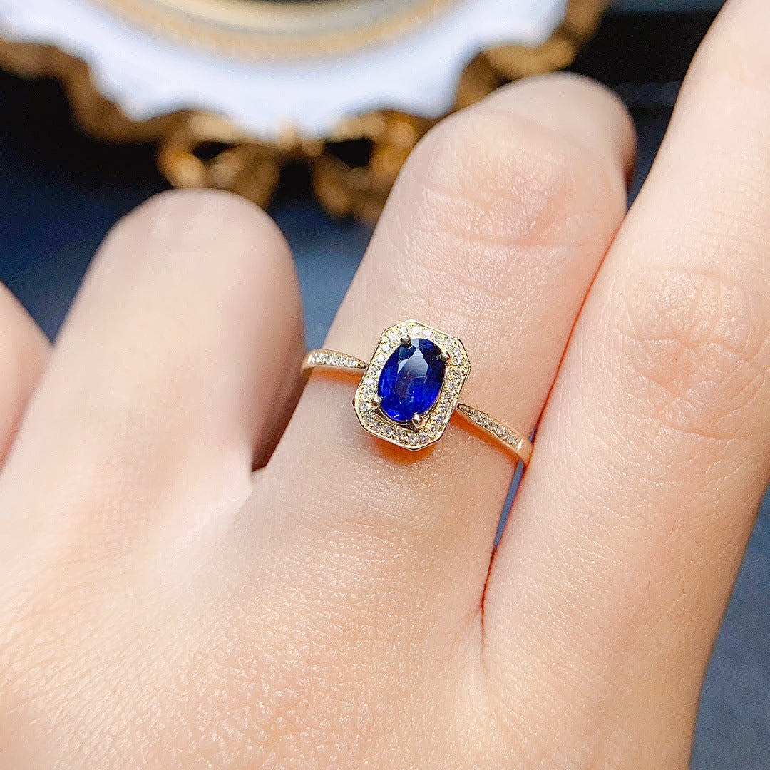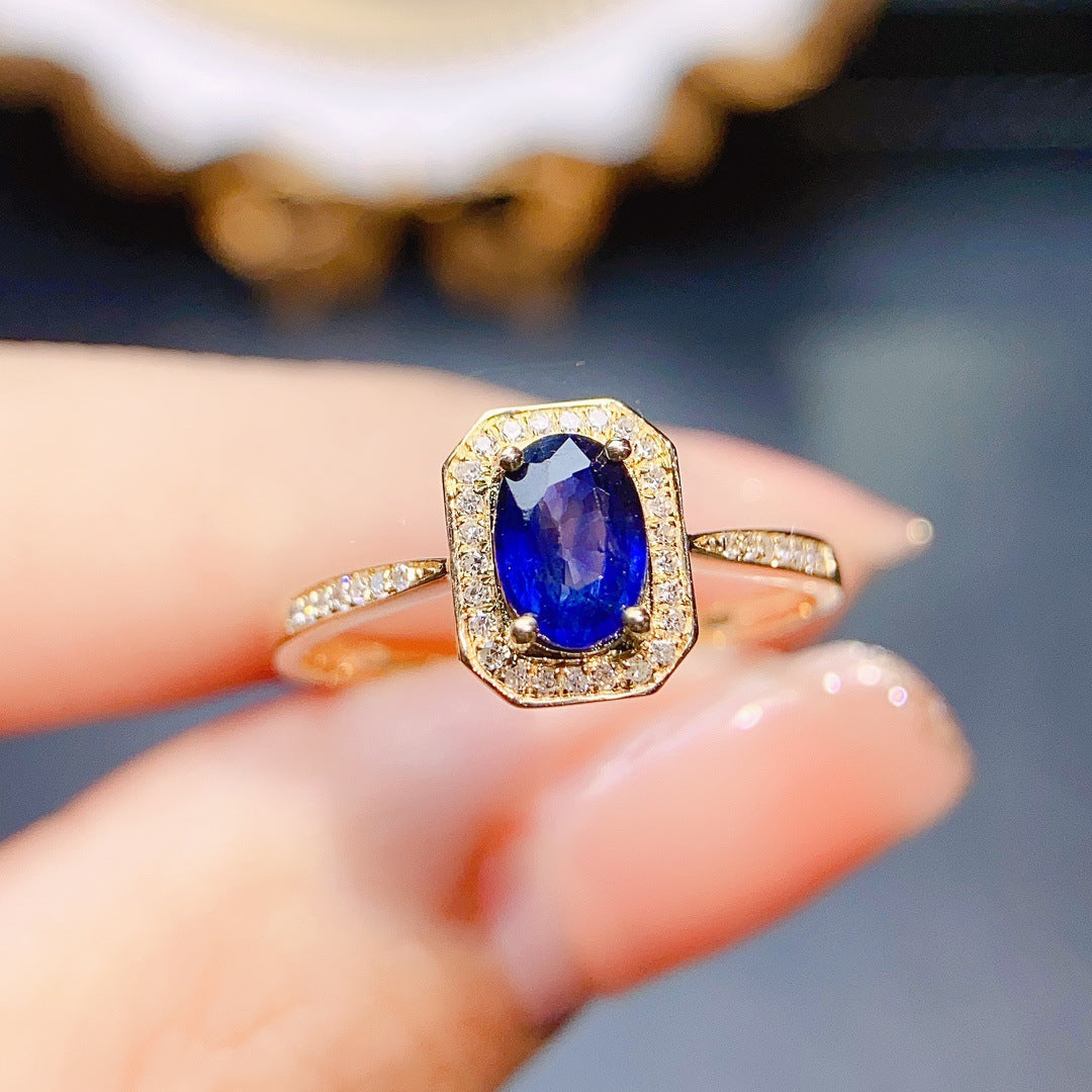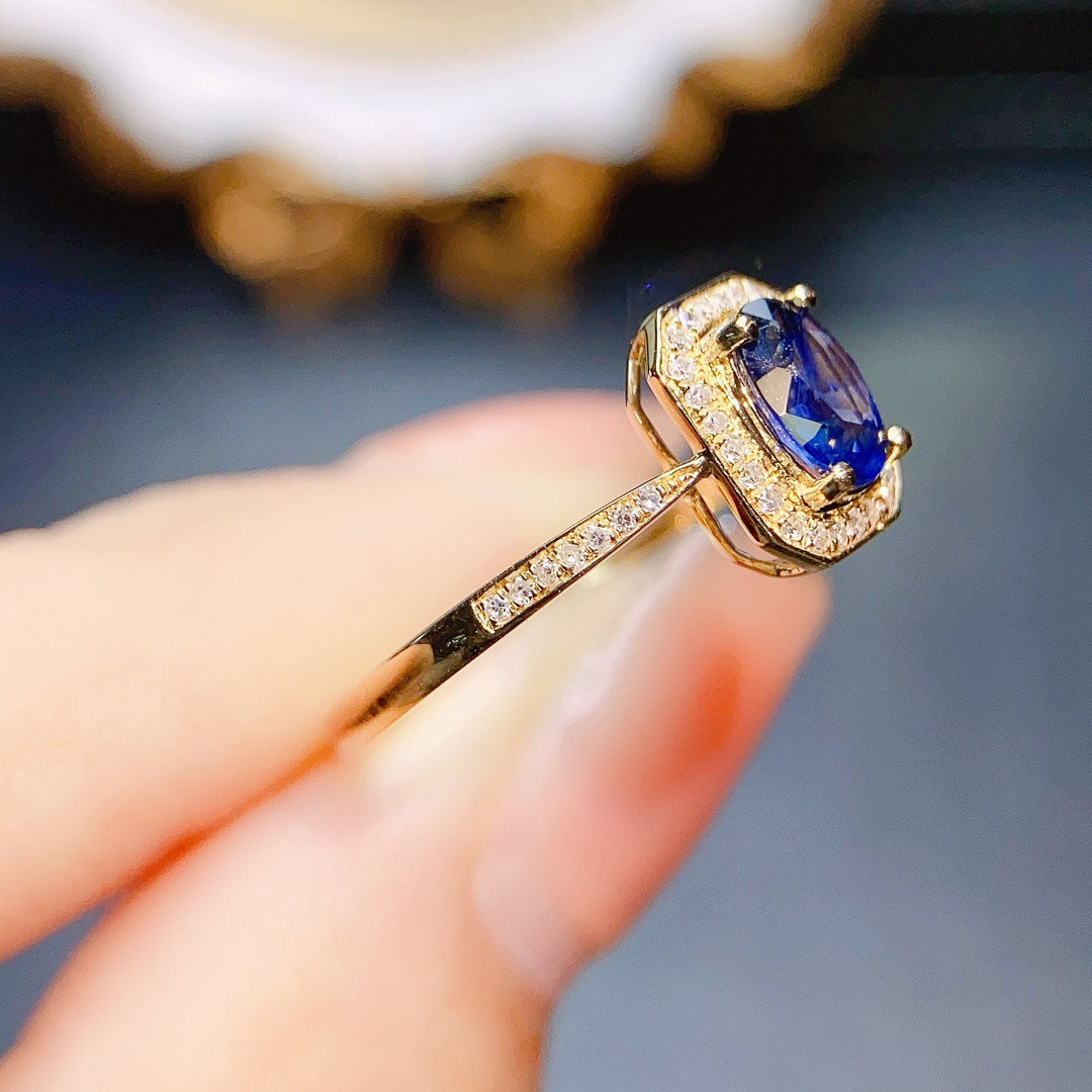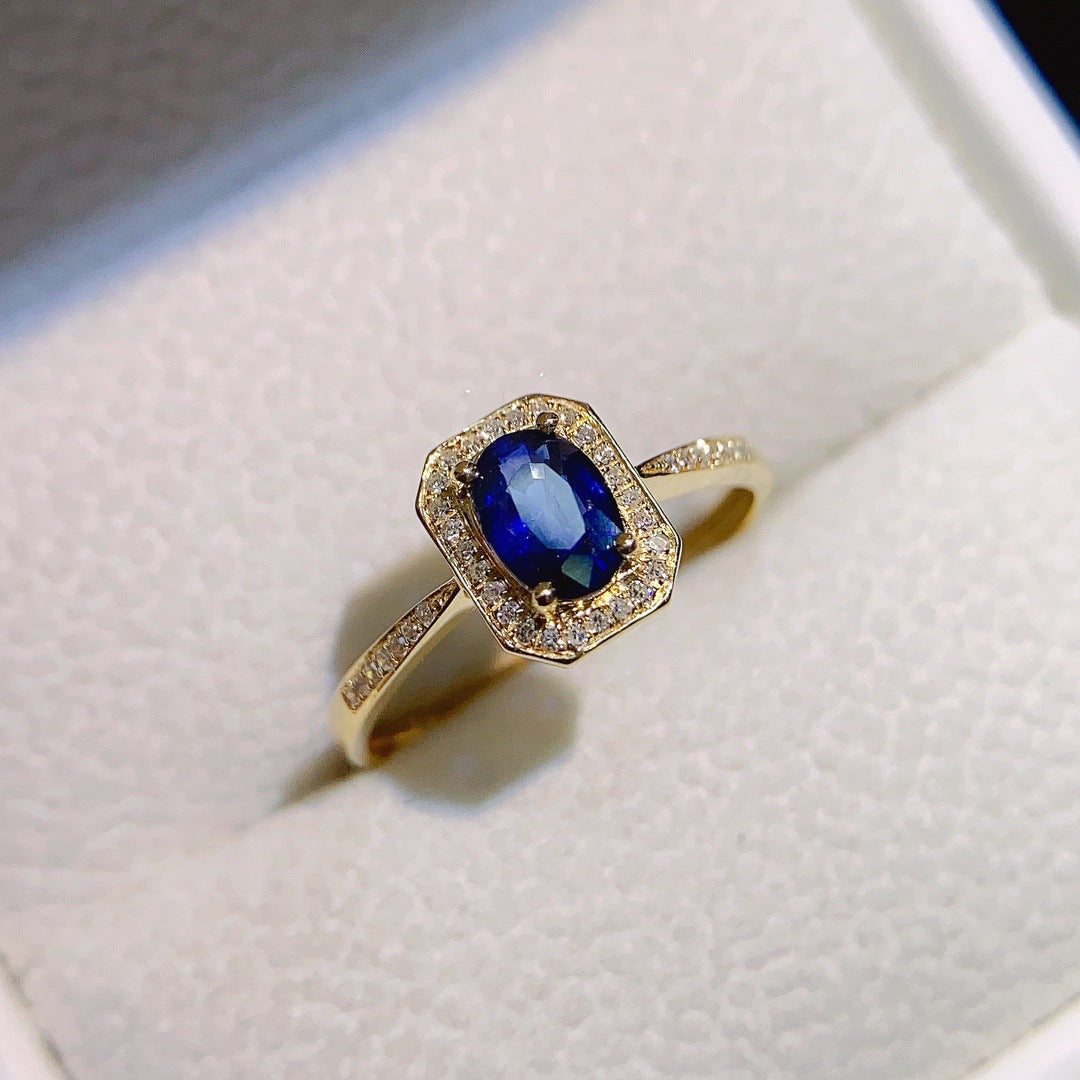 Anillo de zafiro natural en oro de 18 quilates con piedra principal engastada 4*6 en venta