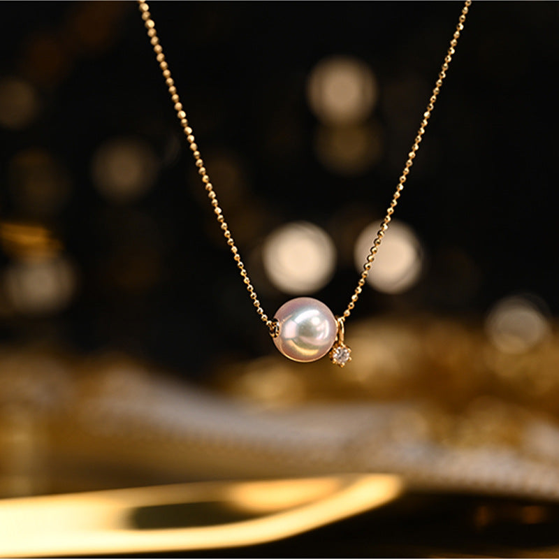 Las brillantes perlas Akoya de 8-9 mm irradian un resplandor natural que capta la luz de forma hermosa, mostrando sus impresionantes tonalidades y su clásica forma redonda. Cada perla se selecciona cuidadosamente a mano por su calidad y brillo, lo que garantiza que cada hebra sea una obra de arte.