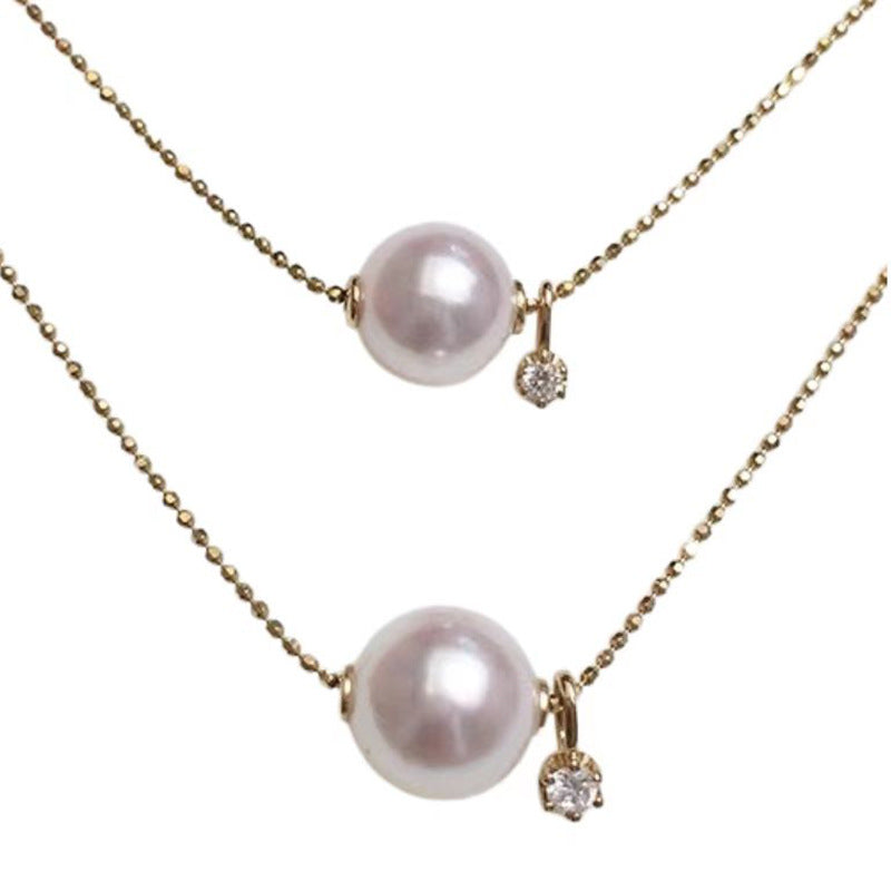 Realza tu estilo con nuestro exquisito collar de perlas de Akoya de agua de mar de 8-9 mm que incluye un lujoso colgante con detalles en oro de 18 quilates. Este collar es el epítome de la elegancia y ofrece una declaración de moda versátil y atemporal que puede pasar sin esfuerzo del día a la noche.