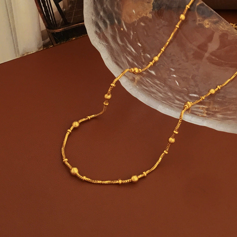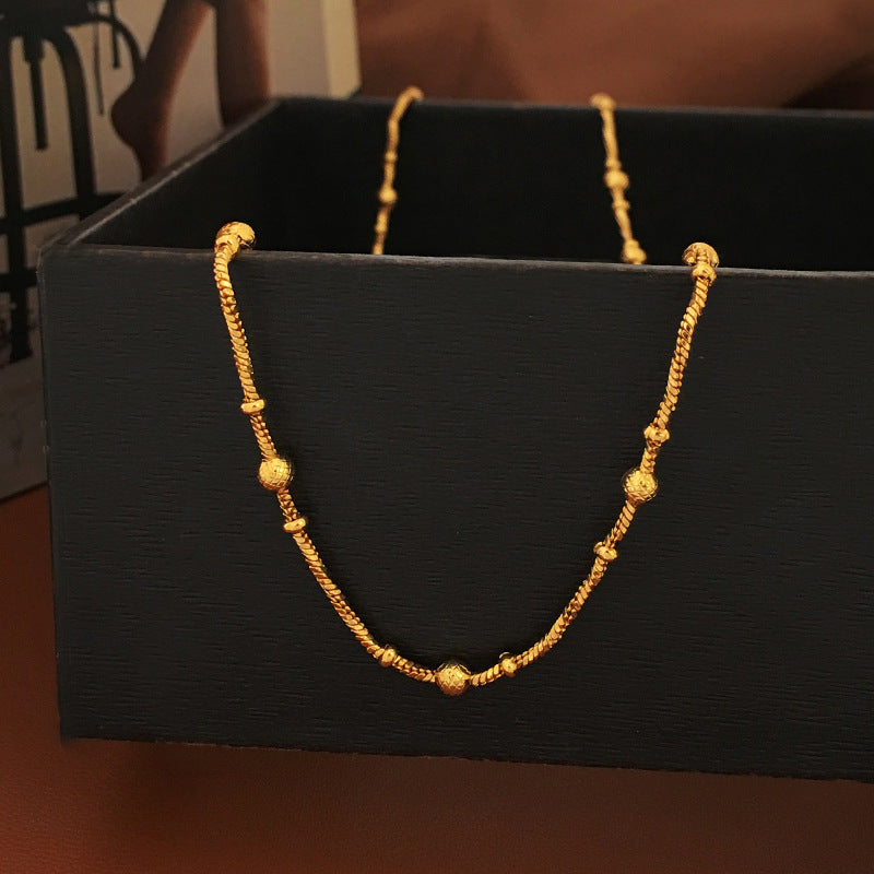 Presentamos nuestro collar minimalista de cuentas redondas bañado en cobre y oro genuino, una pieza elegante y versátil que encarna la simplicidad y el estilo. Este collar sobrio pero elegante presenta una tira de cuentas redondas que exudan un aire de sofisticación y refinamiento.