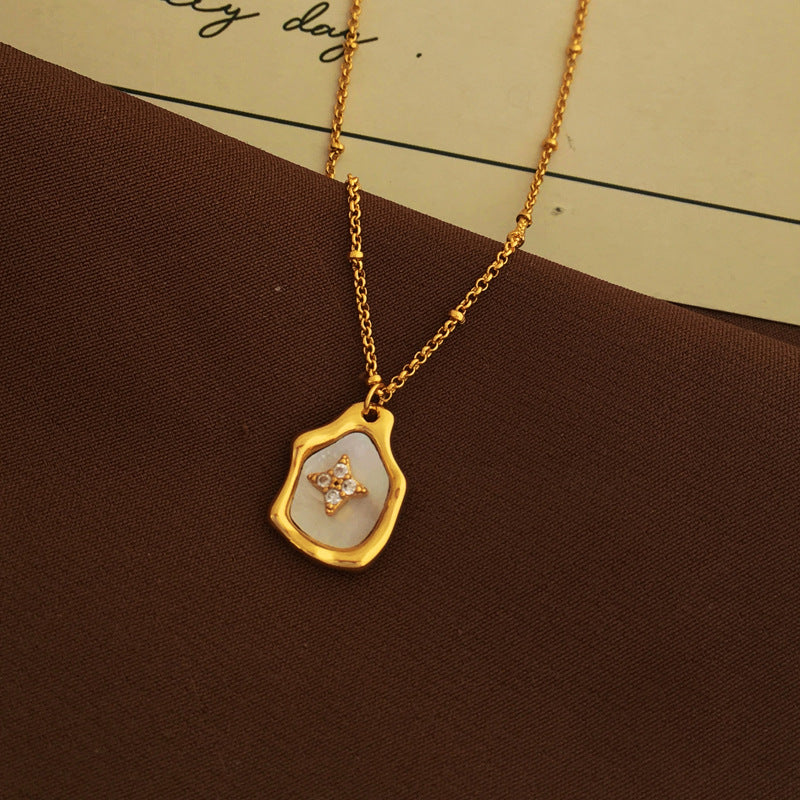 Presentamos nuestro último collar con colgante geométrico irregular de inspiración coreana, una combinación perfecta de elegancia y estilo contemporáneo. Elaborado con oro genuino bañado en cobre, este collar presenta un diseño elegante y único con colgantes geométricos irregulares adornados con diamantes brillantes.