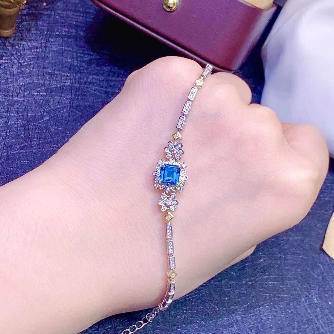 Descripción: Realza tu elegancia con nuestra pulsera de topacio azul cuadrado. Esta exquisita pieza cuenta con una impresionante piedra preciosa de topacio azul de corte cuadrado que irradia estilo europeo y americano. El encanto vintage de esta pulsera la convierte en un accesorio perfecto para cualquier ocasión, mientras que su diseño único añade un toque de sofisticación. Es una opción de regalo ideal para el día de San Valentín, mostrando tu afecto y estilo.