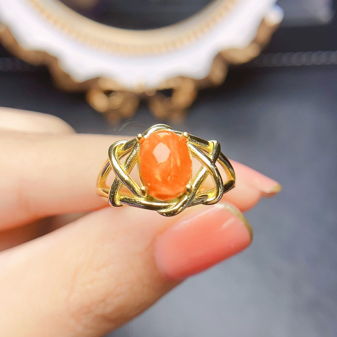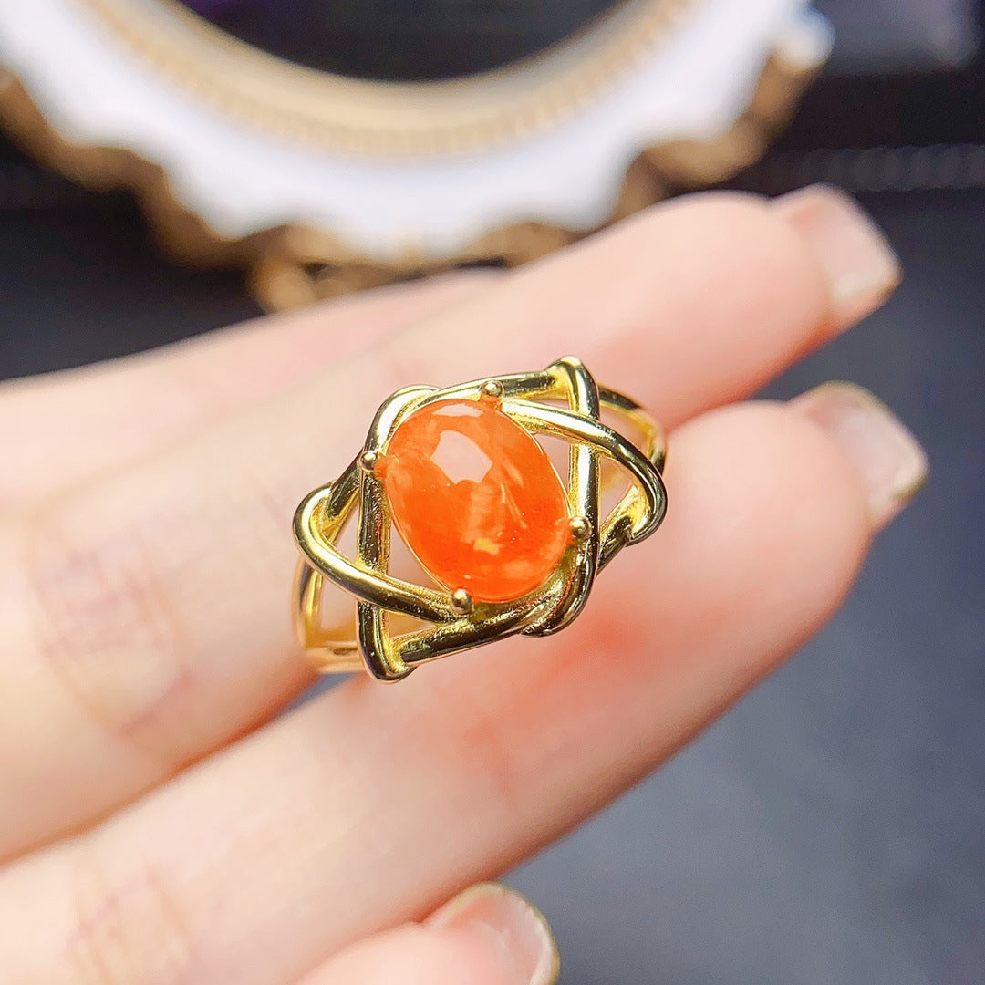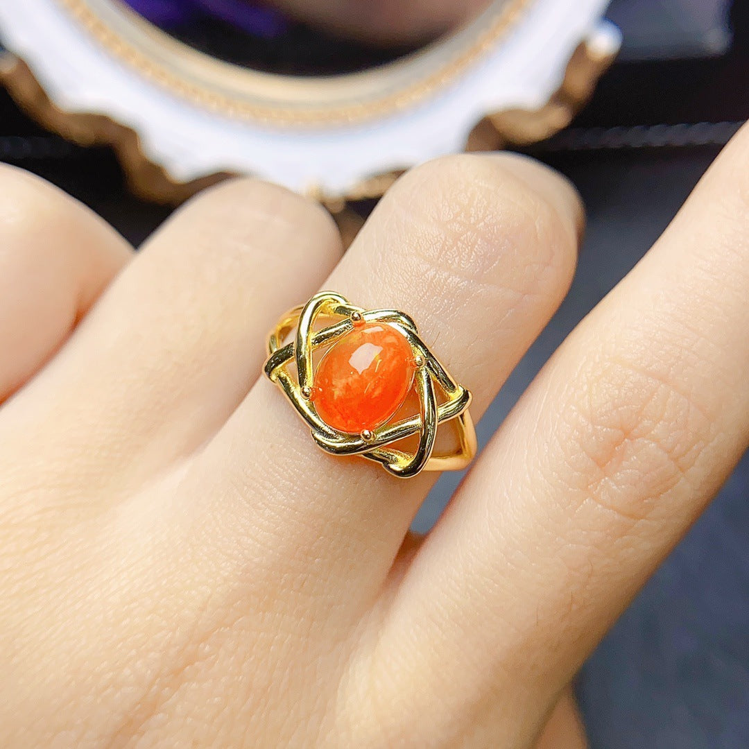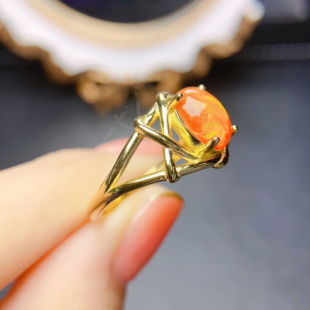 Anillo de ópalo de fuego natural en plata S925 con piedra principal de 7 x 9 en venta
