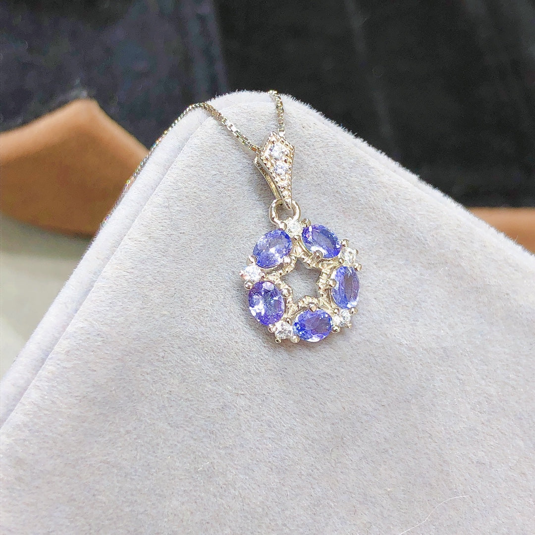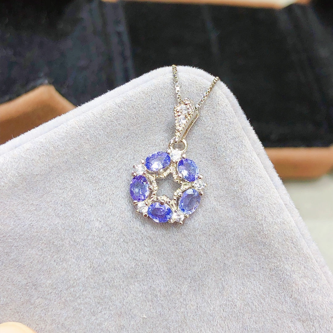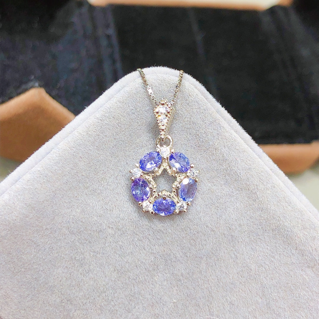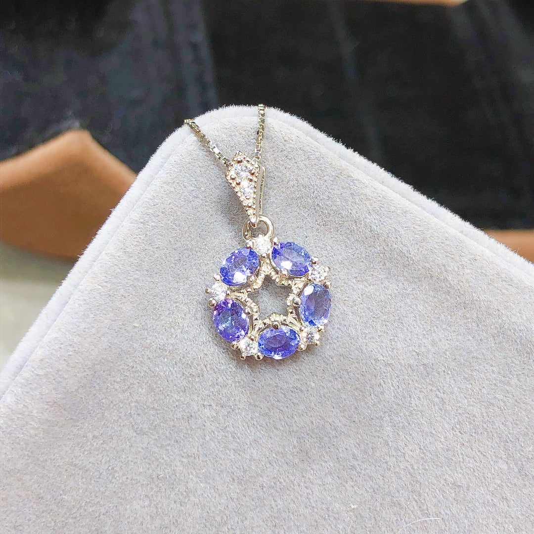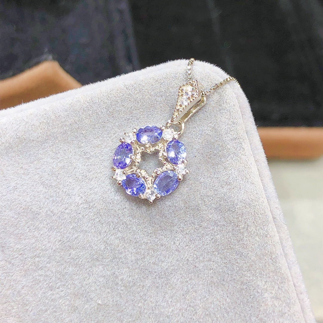 Collar con colgante de tanzanita hecho a mano con cadena de oro de 18 quilates de 18 pulgadas para ella