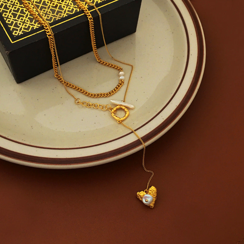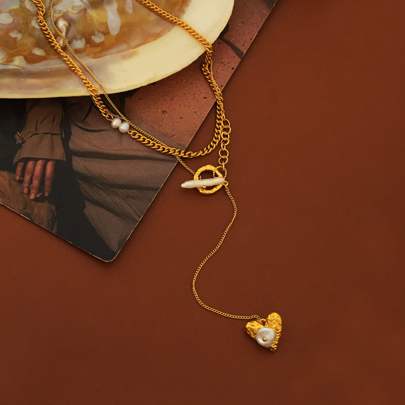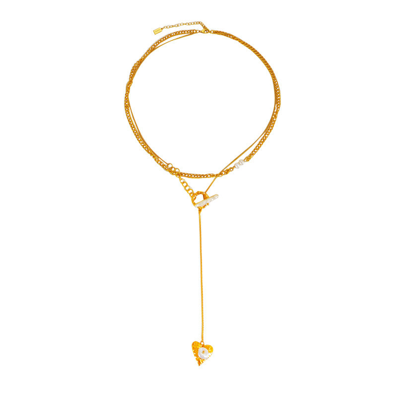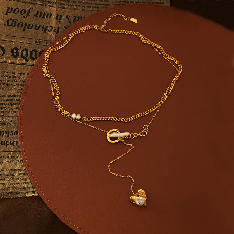 Este collar, elaborado con sumo cuidado y atención al detalle, está pensado para realzar tu estilo y mostrar tu personalidad distintiva. La combinación de cadenas de doble capa y el llamativo colgante de concha marina transmite una sensación de sofisticación elegante.