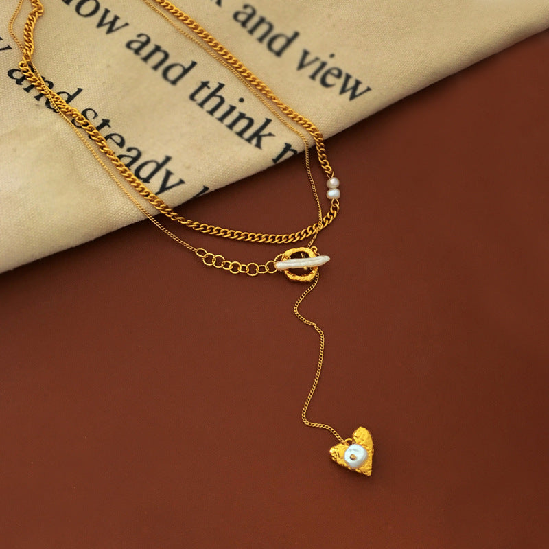 Presentamos nuestro exclusivo collar de doble capa con personalidad de estilo coreano, una combinación perfecta de elegancia y vanguardia. Este exquisito collar presenta una cadena de doble capa con un colgante de concha marina irregular, que agrega un toque de individualidad a su conjunto.