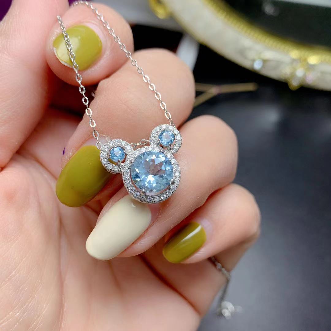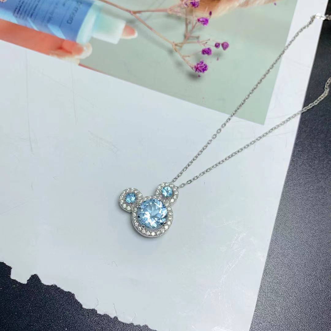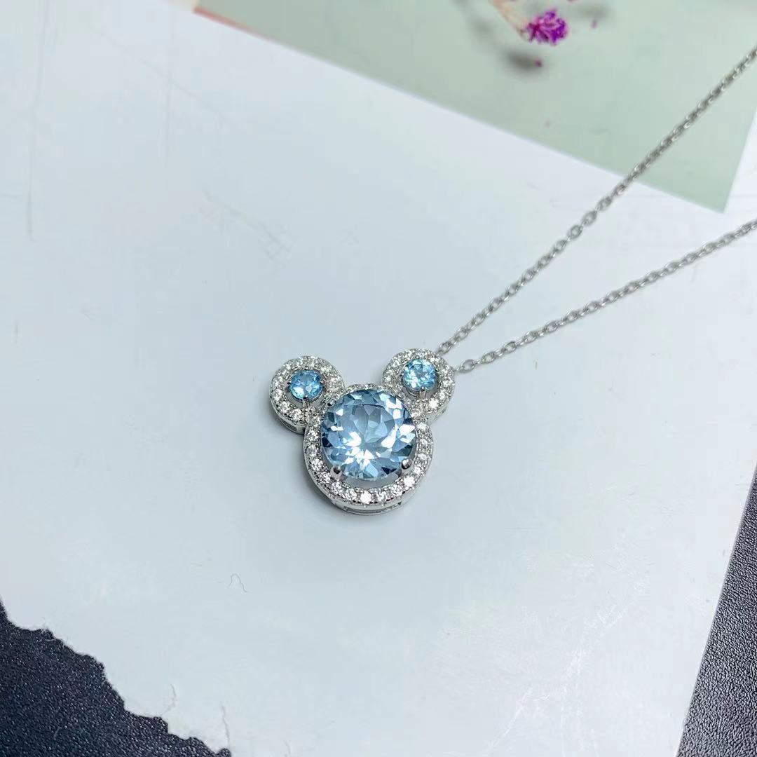 Colgante Mickey Mouse con topacio azul natural en plata 925