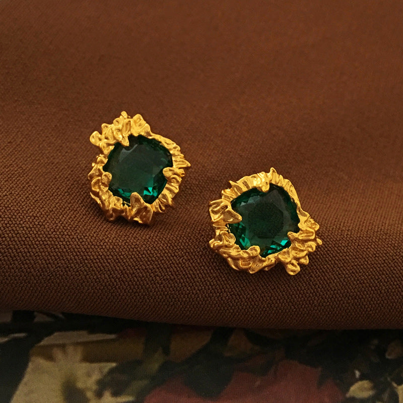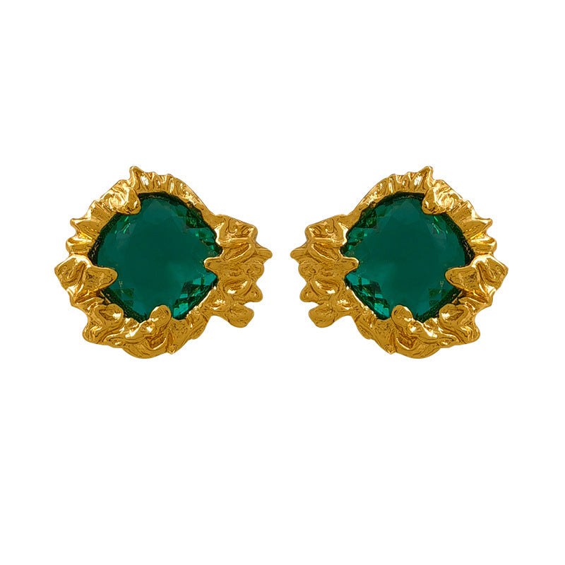 Estos pendientes, elaborados con una meticulosa atención a los detalles, muestran nuestro diseño original que realza tu estilo sin esfuerzo. La forma irregular añade un toque de creatividad e individualidad, lo que los convierte en una pieza destacada en tu colección de joyas. El color verde intenso realza el atractivo general y crea una declaración audaz y moderna.