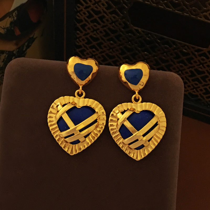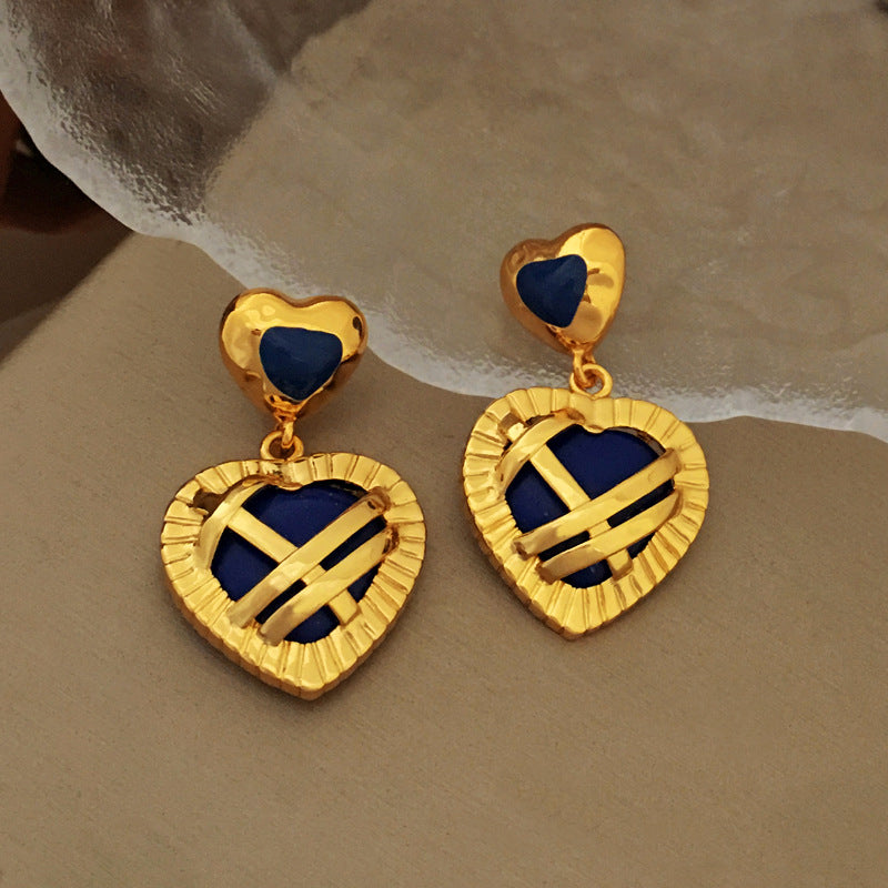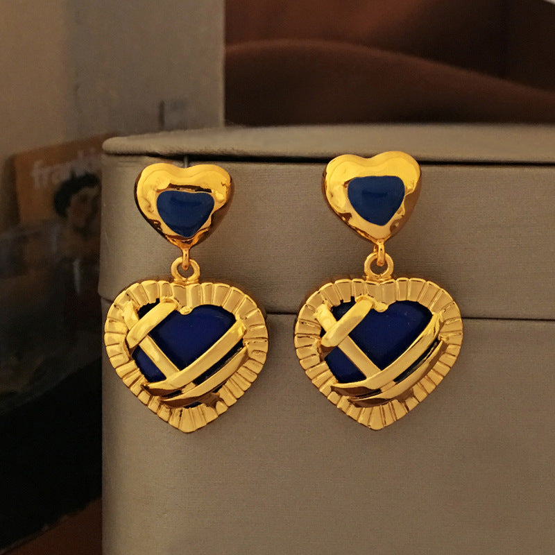 Estos pendientes, elaborados con precisión y atención al detalle, presentan un impresionante detalle en forma de corazón azul que añade un toque de color y encanto a tu conjunto. La aguja de plata S925 garantiza durabilidad y comodidad, lo que los convierte en un accesorio ideal para cualquier ocasión.