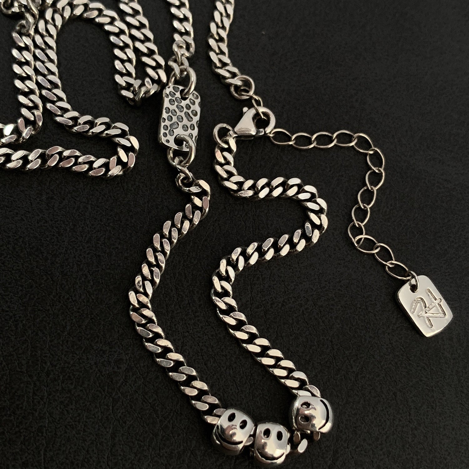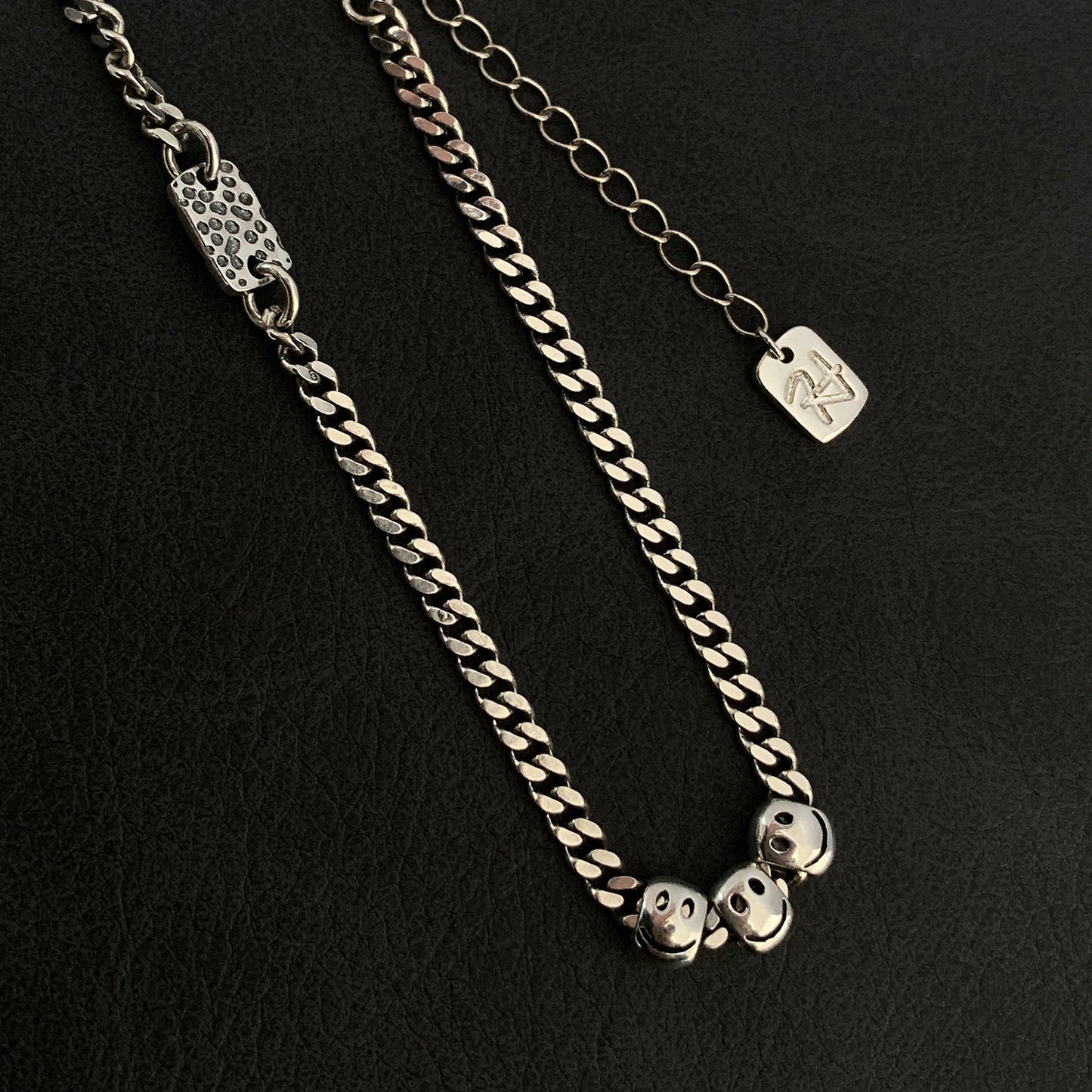 Presentamos nuestro collar de tres caras sonrientes de plata pura S925, una pieza de diseño único inspirada en la moda distintiva y actual del distrito Dongdaemun de Corea. Este collar es una verdadera representación del diseño de nicho pequeño y seguramente elevará su estilo a nuevas alturas.