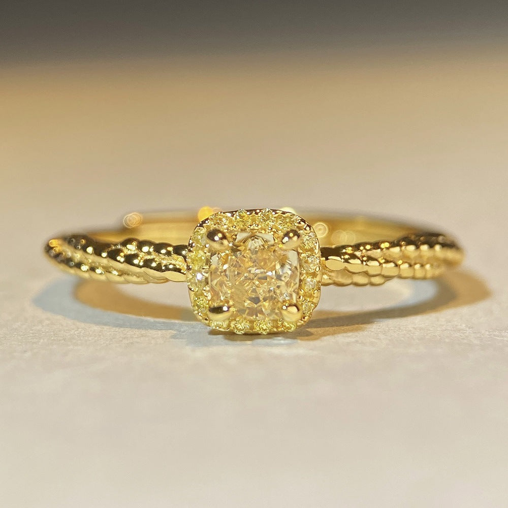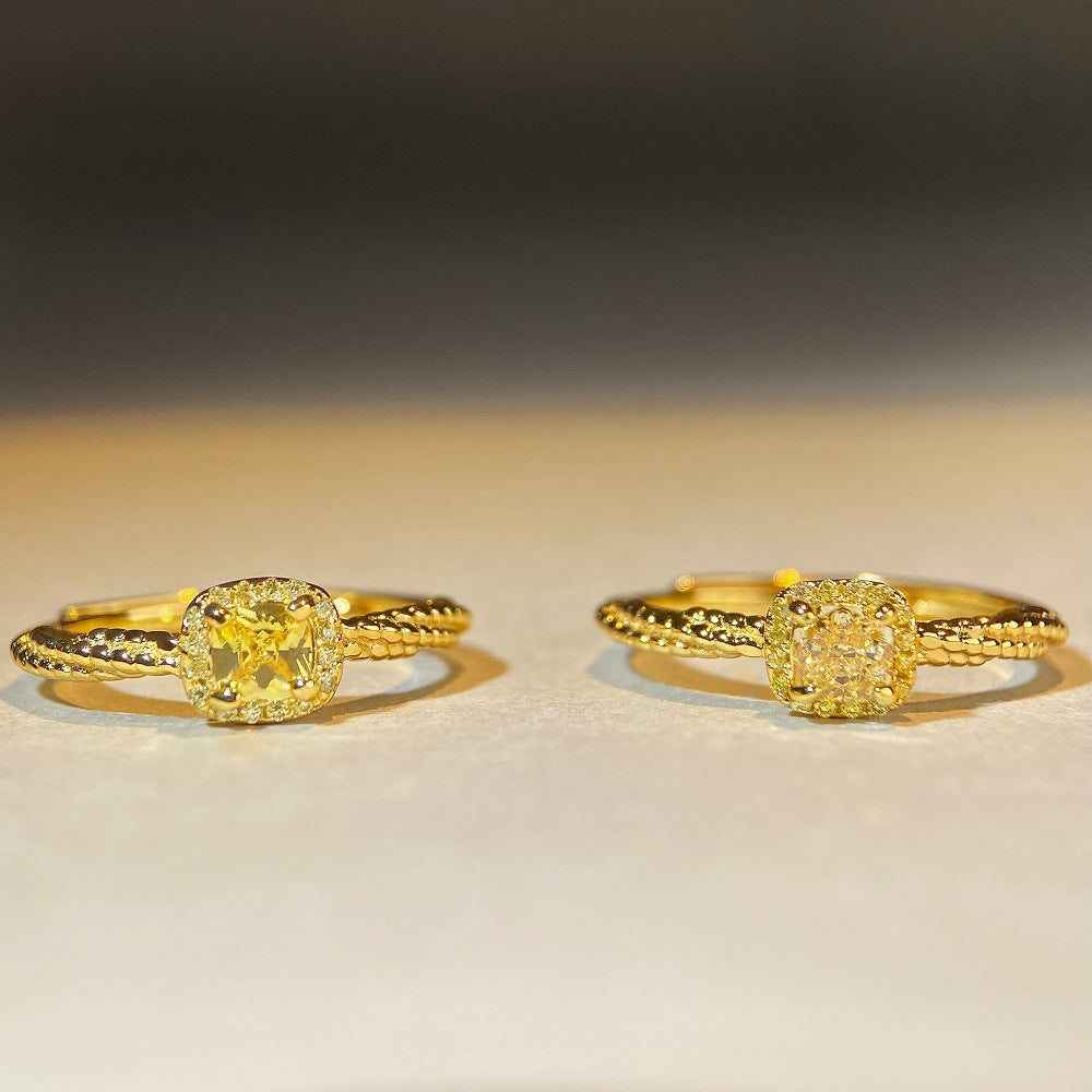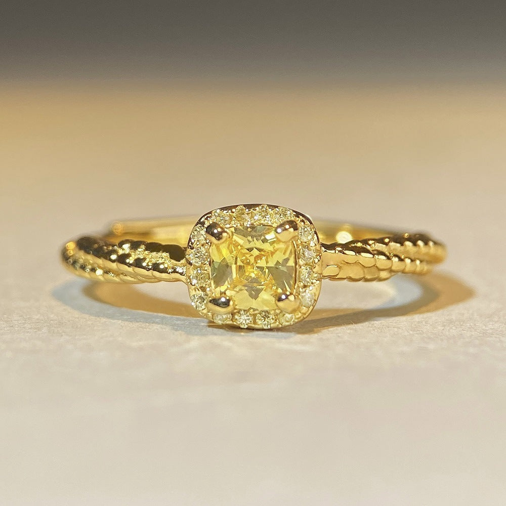 La bague en diamant jaune cube en argent sterling fait référence à une petite bague fraîche et simple.