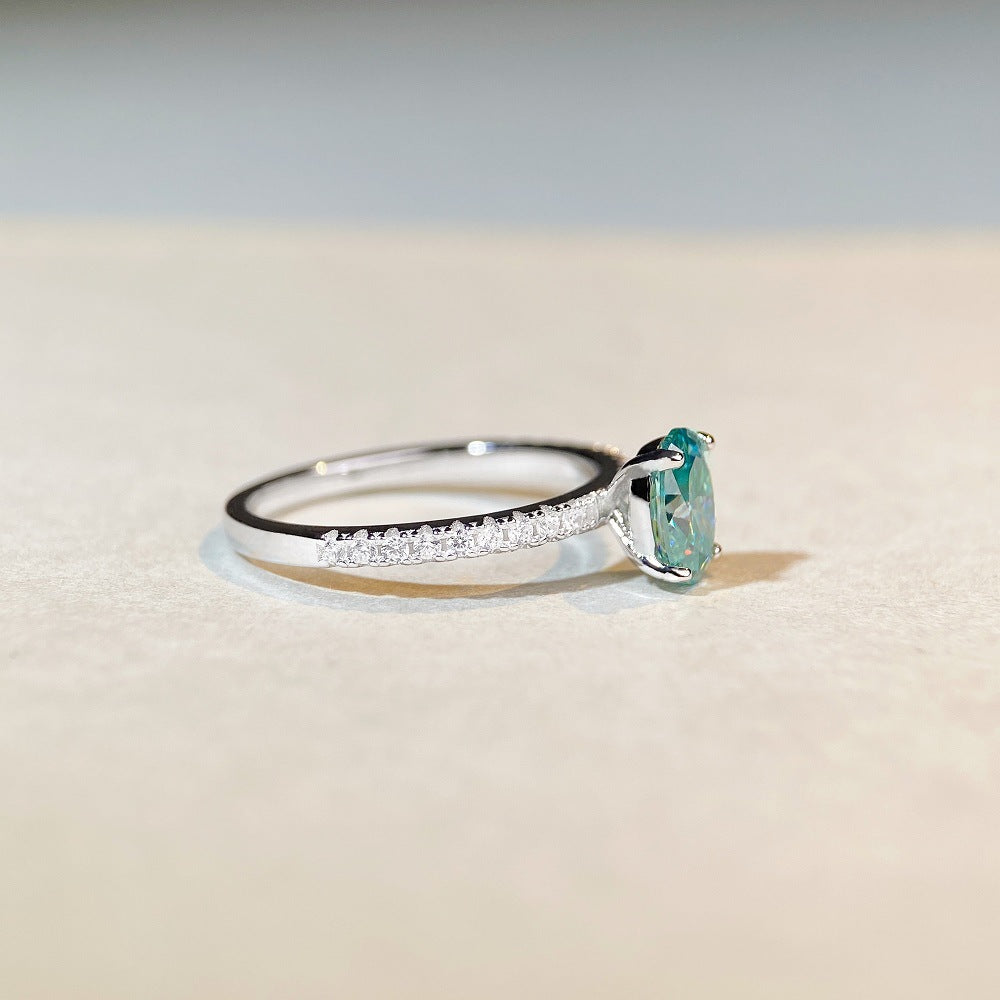 1 Franz Klammer mulberry ring female 925 sterling silver pigeon eggs mint green Moissanite stone ring.