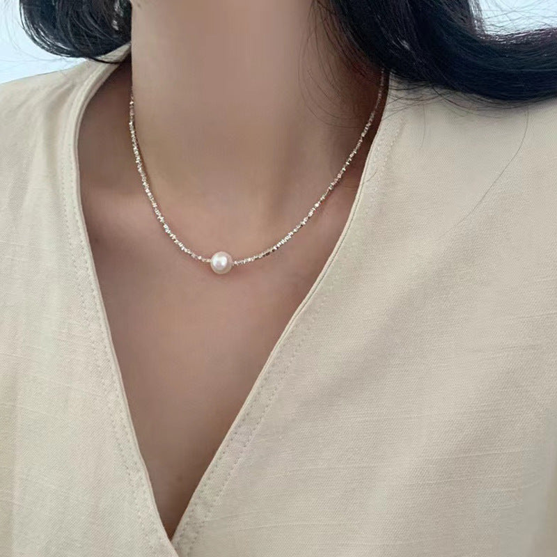 Introducing our "Silver Shards & Pearl" S925 Sterling Silver Natural Pearl Necklace, a delicate and unique piece perfect for those seeking a niche and refined accessory. This exquisite necklace features silver shards combined with genuine natural pearls, creating a timeless collarbone chain that adds a touch of elegance and versatility to any summer outfit.