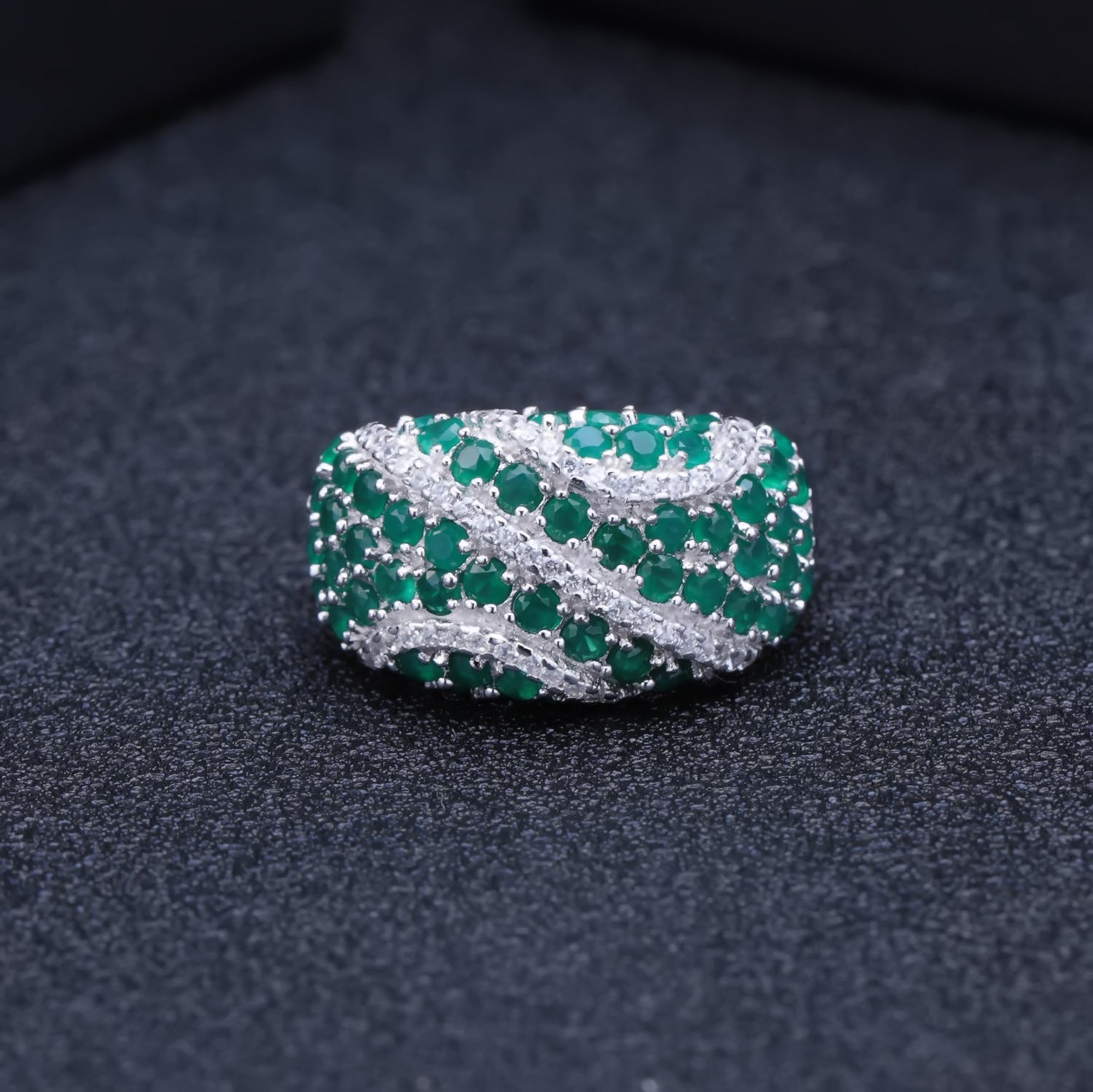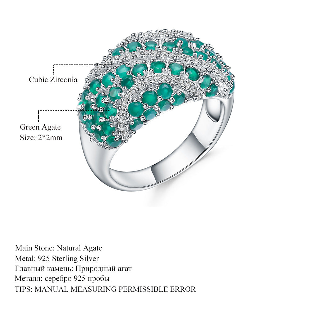 Green agate gemstone ring s925 sterling silver inlaid with natural gemstone ring