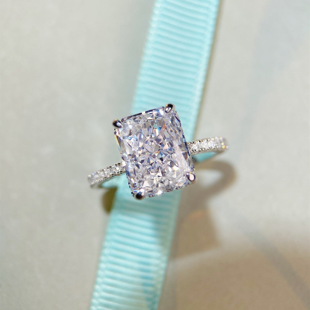 Ice Flower Cut Ring S925 Pure Silver High Carbon Diamond Zircon Square Full Diamond Ring