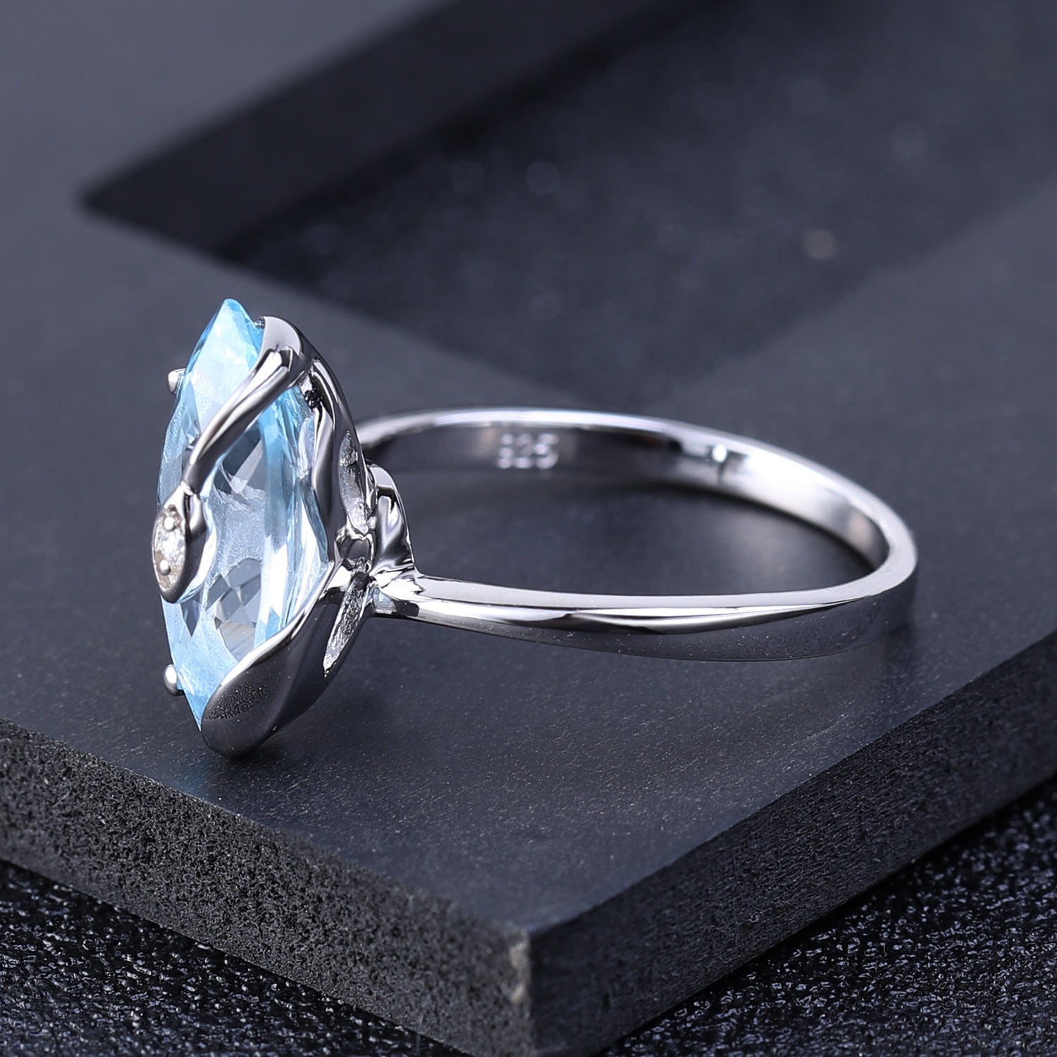 Light luxury personality natural topaz ring Fashion design sense S925 sterling silver inlaid natural gemstone ring