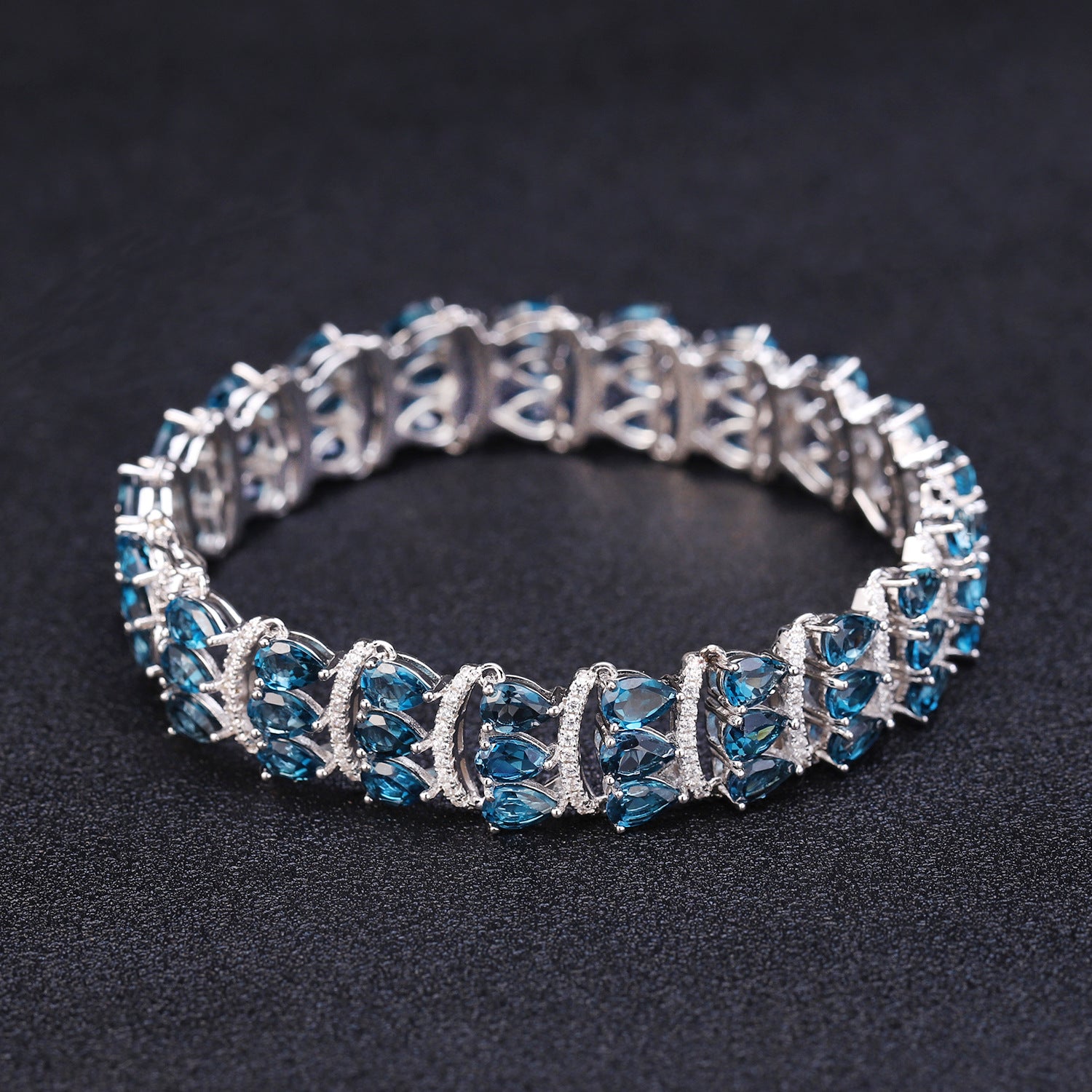 Natural stone Topaz luxury inlaid bracelet female s925 silver multi-gem bracelet