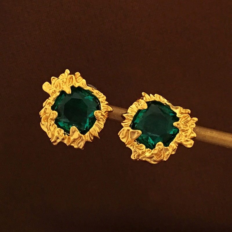Crafted with meticulous attention to detail, these earrings showcase our original design that effortlessly elevates your style. The irregular shape adds a touch of creativity and individuality, making them a standout piece in your jewelry collection. The rich green color enhances the overall appeal, creating a bold and fashionable statement.