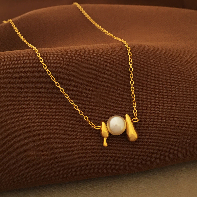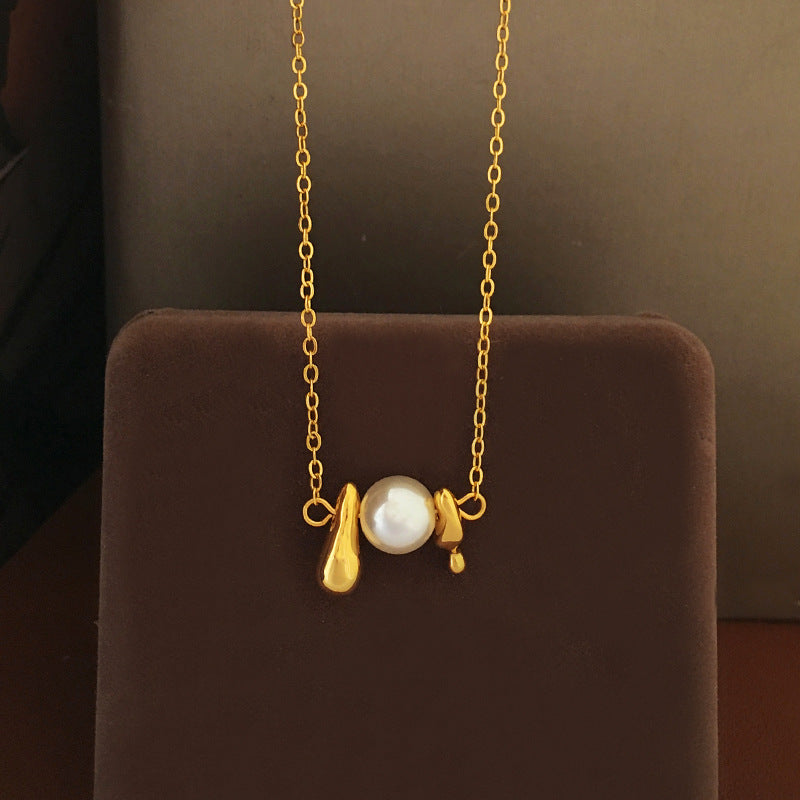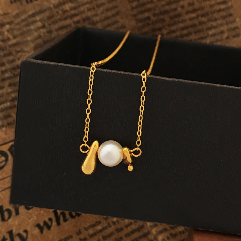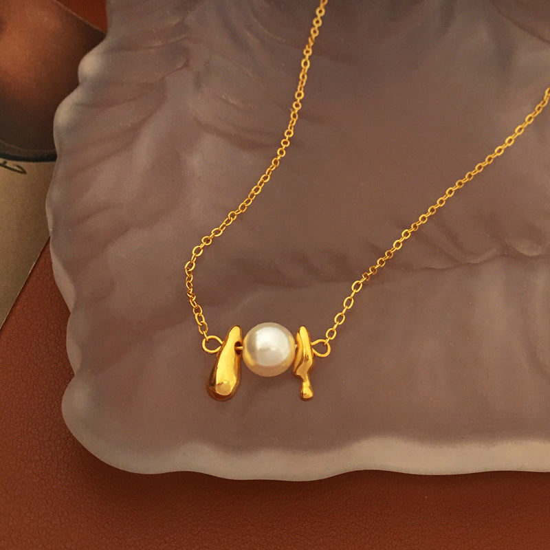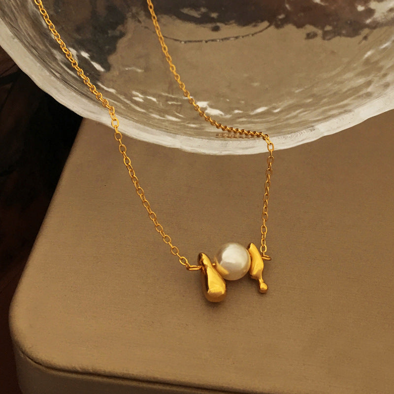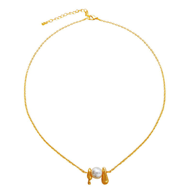Crafted with meticulous attention to detail, this necklace features an innovative and minimalist design. The irregular shape adds a touch of contemporary flair, making it a standout piece in your jewelry collection. The necklace is adorned with lustrous pearls, carefully selected for their quality and beauty, adding a touch of sophistication and elegance.