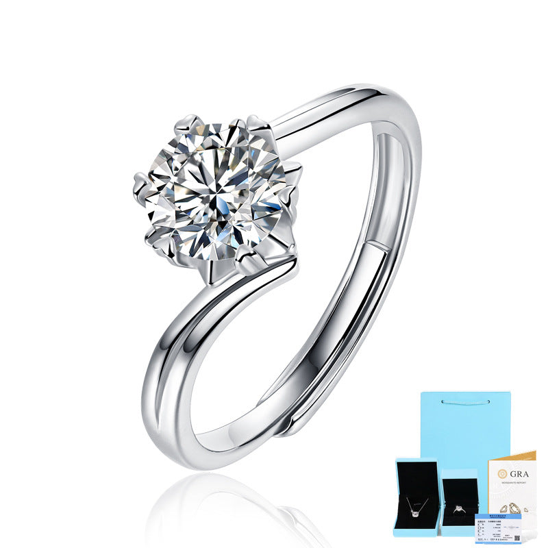Ring S925 Silver Plated Platinum Set with Mosonite Snow Flower Women's Ring New Silver Jewelry