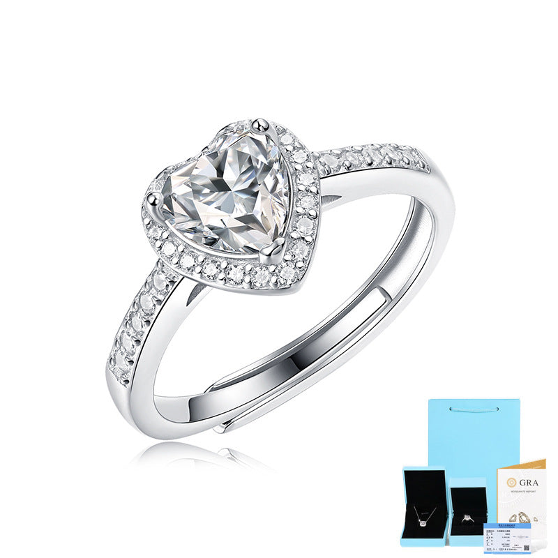 S925 Silver Ring, Mosang Stone Original Heart Ring, New Heart shaped Live Ring
