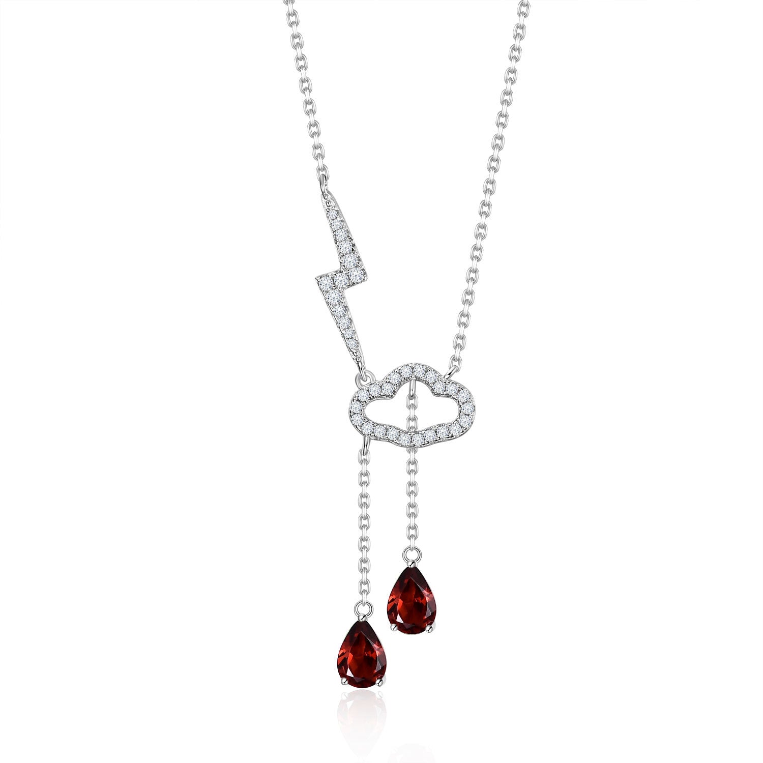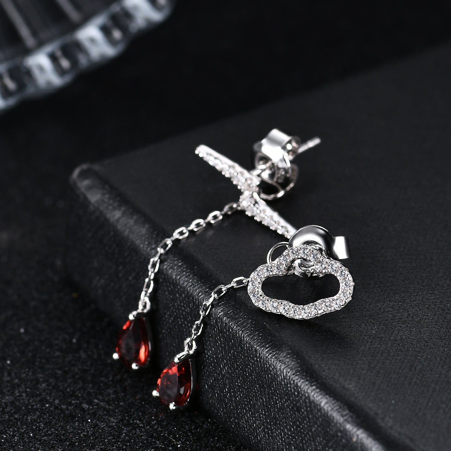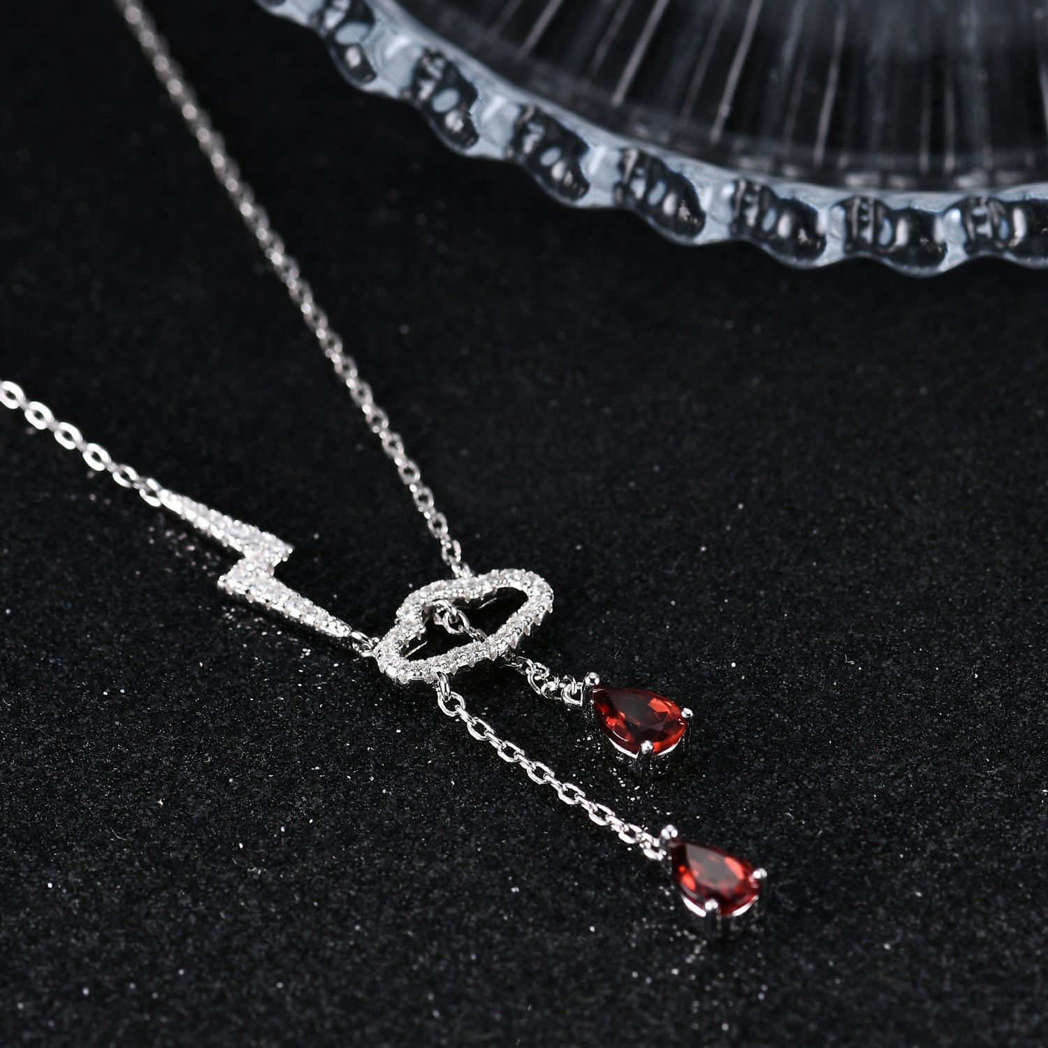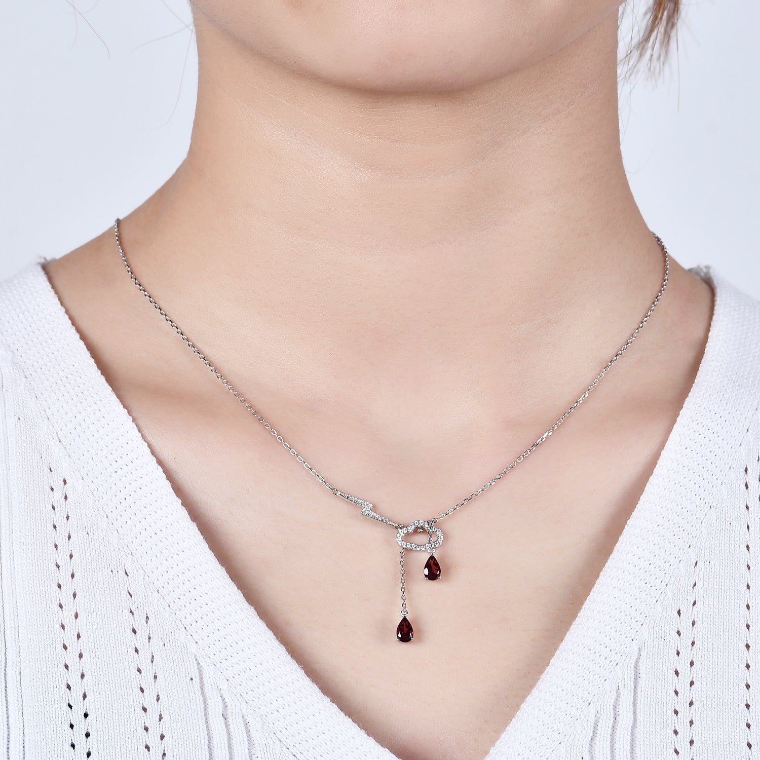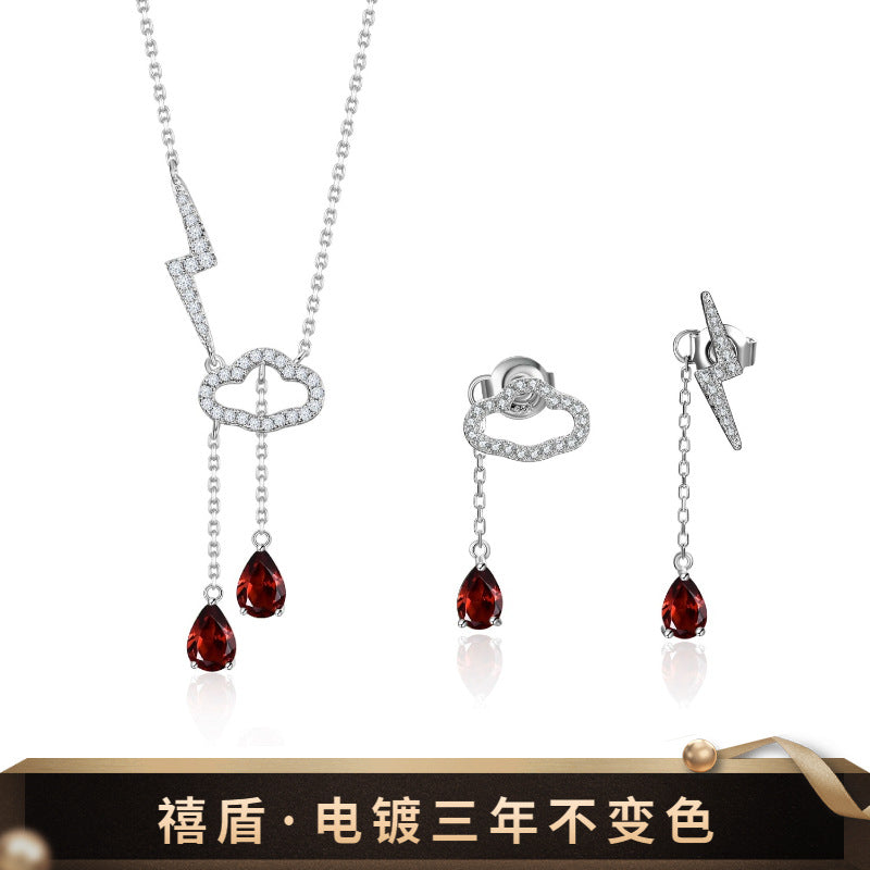 Stud Necklace Set s925 Silver Inlaid Garnet Jewelry Set